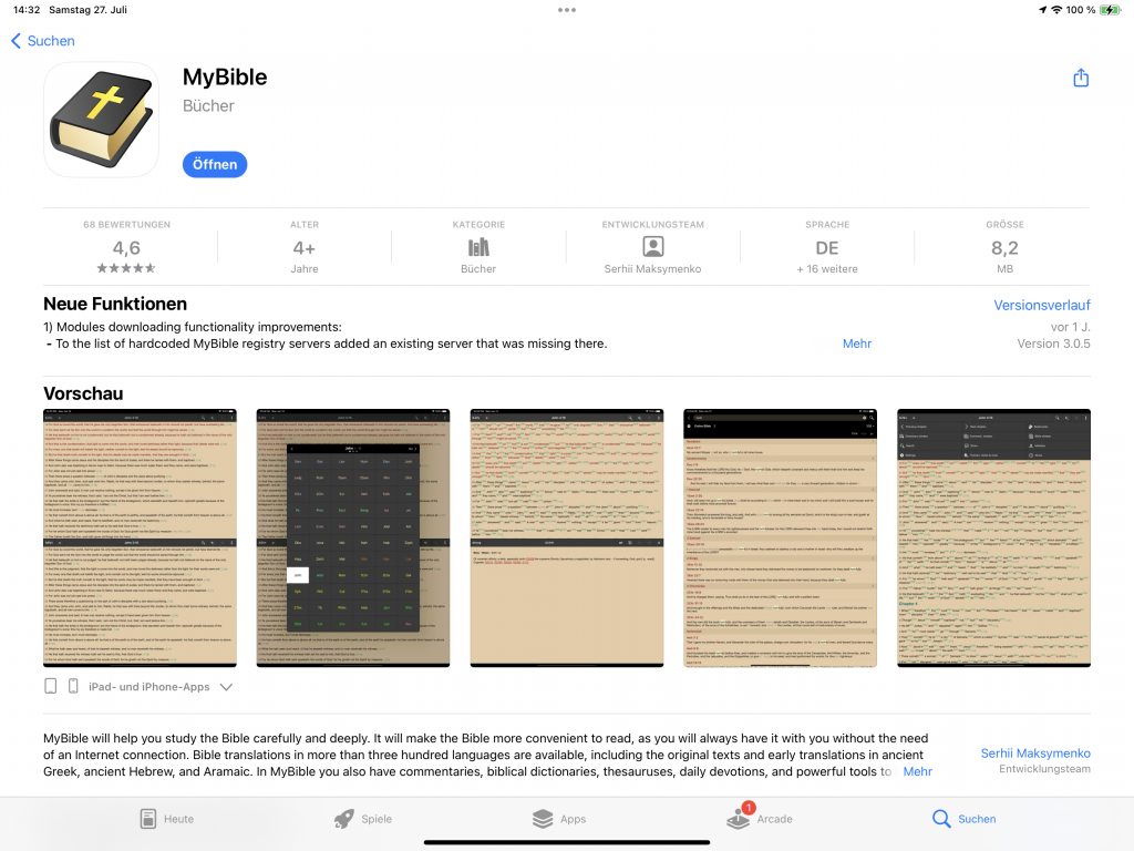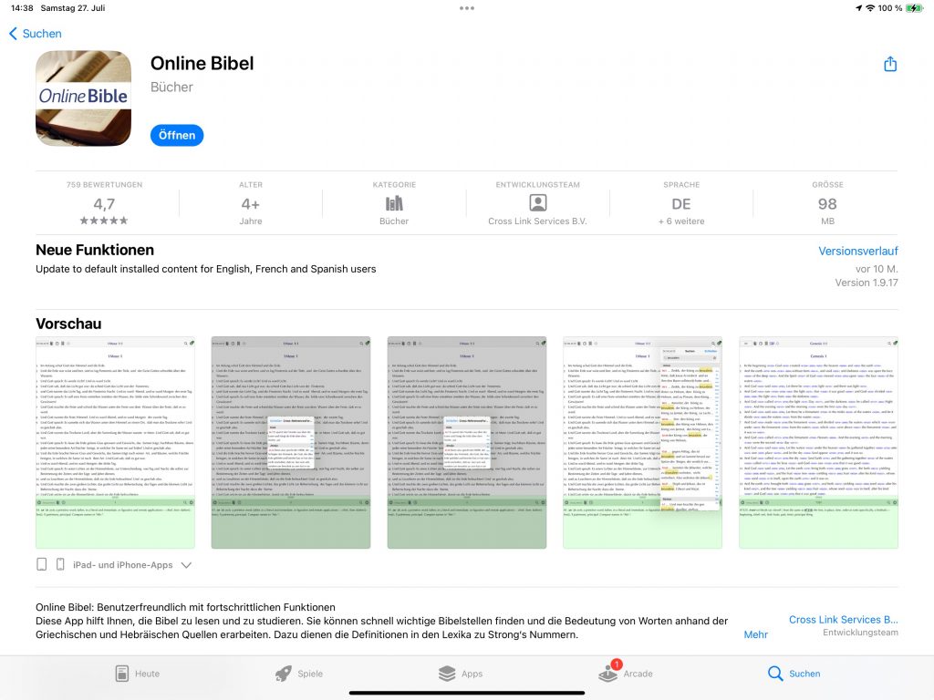 In den App-Stores werden auch Bibel angeboten, die man dann auf Smartphone oder Tablet lesen kann.